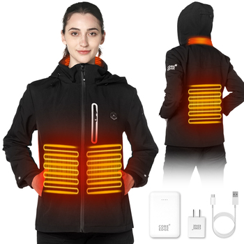 Chaqueta de Forro Polar Impermeable con Calefacción por Batería para Invierno, Chaqueta Unisex con Capucha Desmontable, 8 Almohadillas de Calefacción, Tira Reflectante Delantera